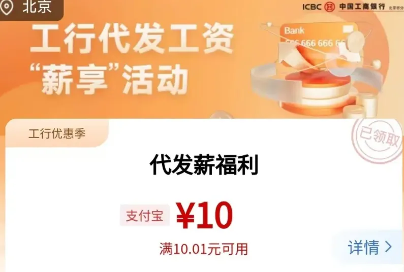北京的亲在工行App搜工行消费季,领下面的支付宝立减金