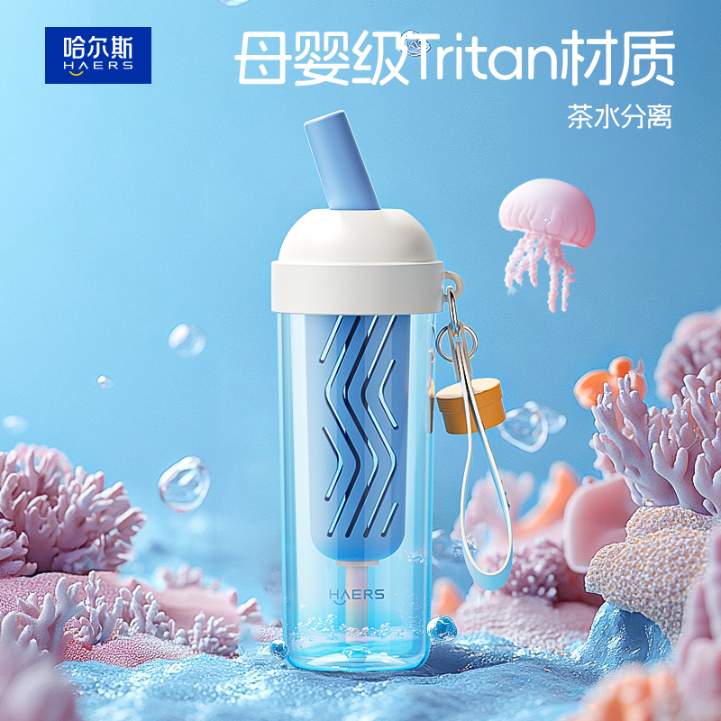 哈尔斯官方旗舰店 夏季新款高颜值tritan吸管杯650ml